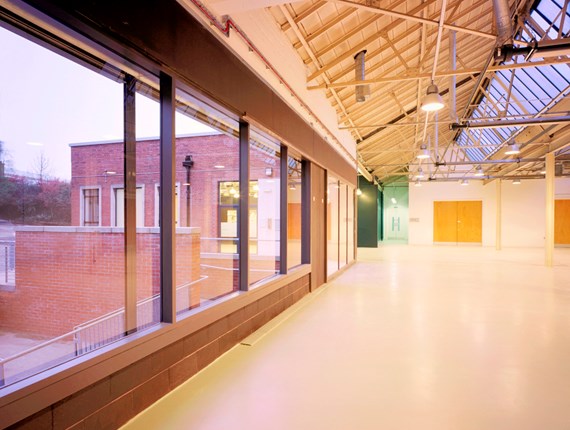 Hanson Street’s Project Space is on the ground floor of the building, with floor to ceiling windows on one side facing out to the car park.